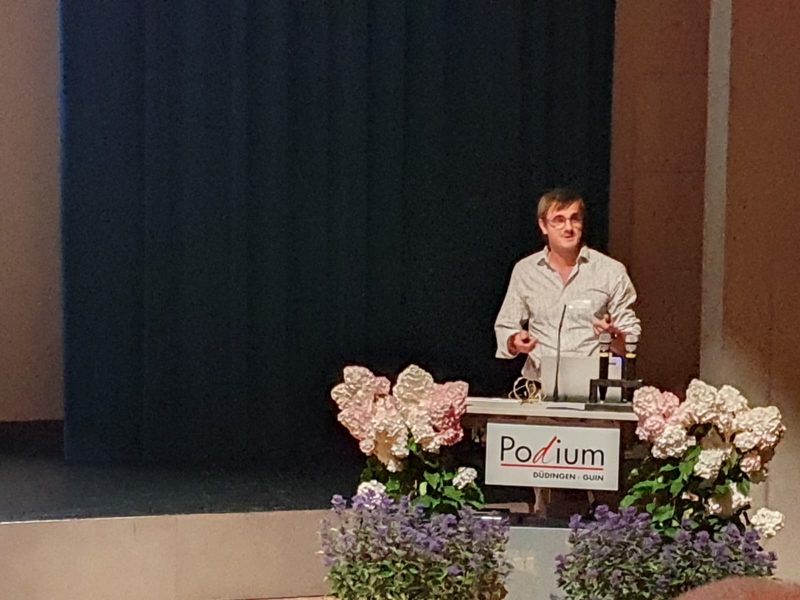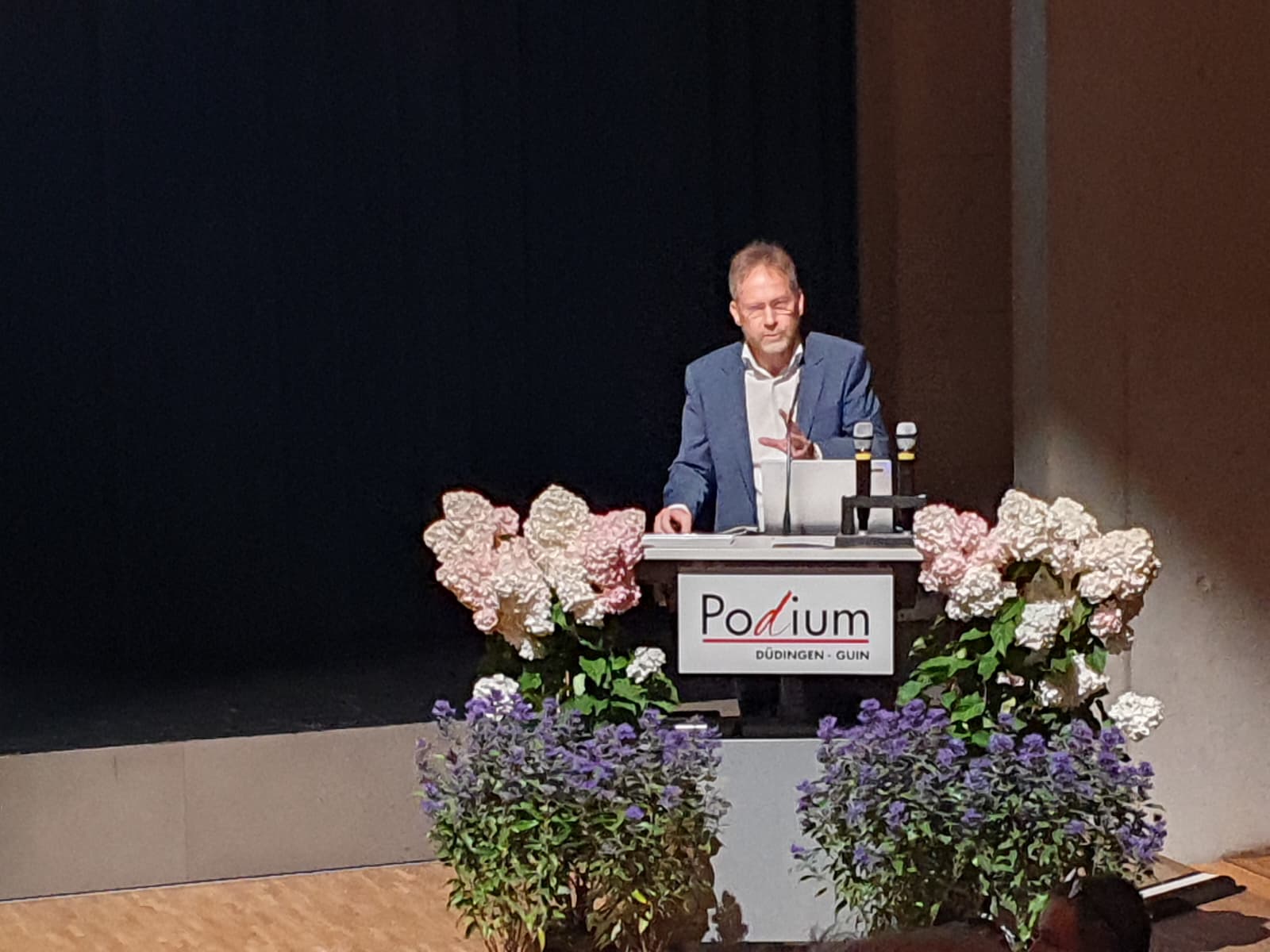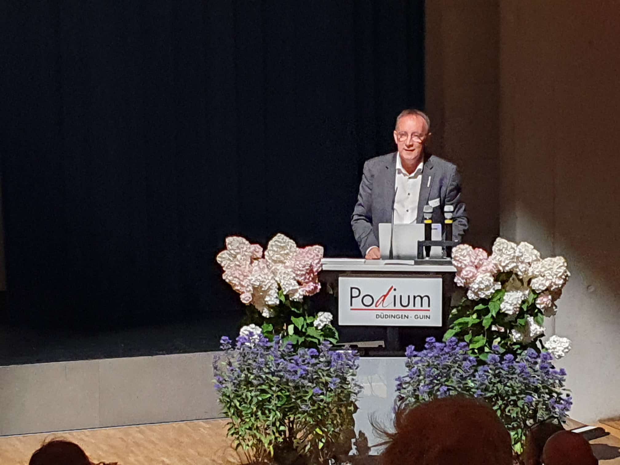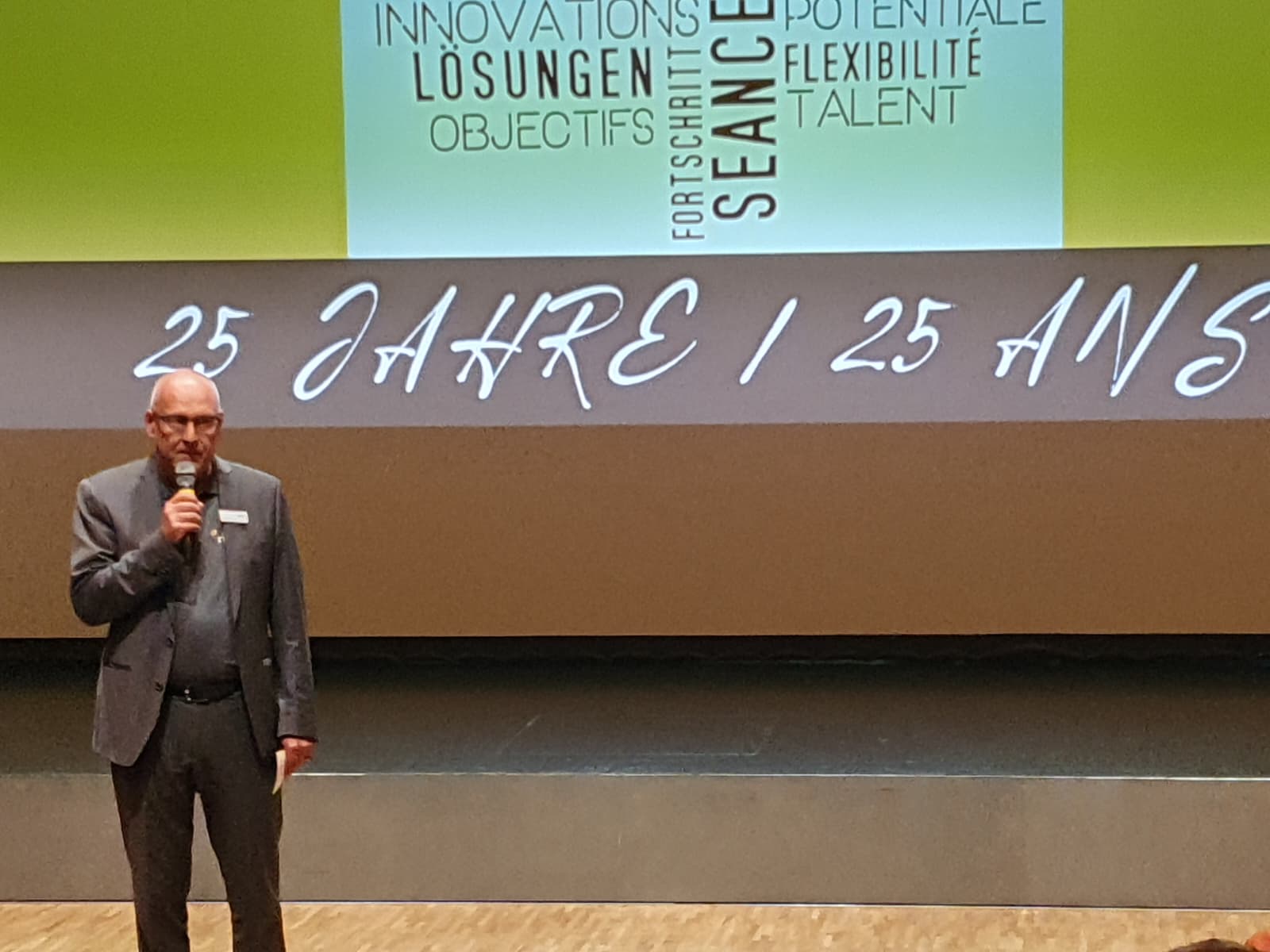 Heute im Podium in Düdingen: viele bekannte und fröhliche Gesichter gedenken der Gründung des Vereins Düdingen in Dankbarkeit für den Mut der "Gründerväter" und für die geleistete Arbeit aller Mitarbeiter in den vergangenen 25 Jahren.